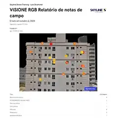 | Relatório | Fotos e anotações | Modelo 3D + relatório rastreável |