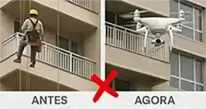 Sim. Todo o voo é feito por drone profissional, com plano técnico aprovado e operação remota — ninguém precisa subir na fachada.